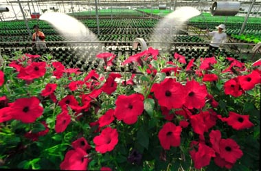 “鱼米之乡”——浙江省近年在全国率先实行取消国家定购任务的粮食购销市场化改革,让广大农民自主选择农产品的种养品种和规模,市场化的效益农业已成为全省农民增收的新亮点。浙江农民在2001年的人均纯收入达到4582元,连续16年成为全国各省、自治区的“增收状元”。春回大地,浙江各地农民纷纷改变了以往仅仅是春播稻秧的传统农俗,竟相以“八仙过海、各显神通”的创造精神投入各种名优特新农产品的生产经营,使浙江田野呈现出多姿多彩的农事新景象。花开时节,在杭州丁桥镇花农们的精心呵护下,当地“全国花卉生产示范基地”培育的众多花卉正吐翠绽放。新华社记者 谭进 摄(传真照片)