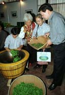 记者昨天在西湖博览会的重头戏----第四届中国国际茶博览交易会上看到,来自杭州“西湖龙井”名茶之乡西湖乡梅家坞村的炒茶能手在第四届中国国际茶博览交易会的展厅内进行现场炒茶表演,观众还可以亲自动手学习炒茶技能。