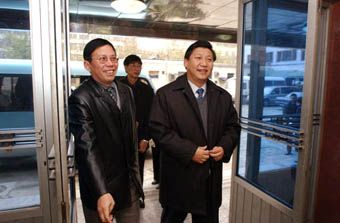 中共浙江省委书记习近平在新华社浙江分社社长费强陪同下看望新华社浙江分社全体职工