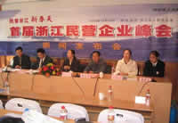 一个主题报告 民营经济发展的新机遇与新挑 战 三个分专题 “浙江制造”品牌战略与民营 企业全球贸易挑战 民营企业实现飞跃的用人之道 成功的资本运作与民营企业实 现高位发展 三大主题演讲 实现“二次飞跃”的民营企业 品牌战略与企业文化 实现“二次飞跃”的民营企业 人力资源与管理创新 实现“二次飞跃”的民营企业 资本筹划与运营 八个对话 八个相关省厅、局领导将就各 厅、局的最新政策与广大企业 家对话交流