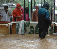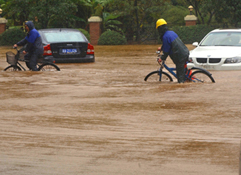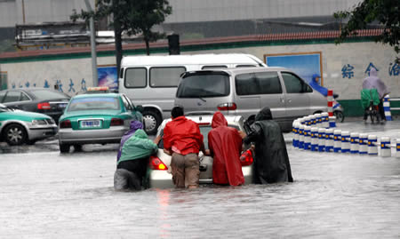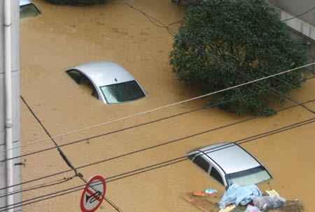 | 杭州市持续10多个小时的强降雨造成该市部分地势地洼小区被淹,运河水出现倒灌,一些城市道路和部分高速路也因为积水过深而封闭。记者从杭州市西湖区城区防汛抗旱指挥部了解到,西湖区由于地势较低,溪流湖泊众多,今天早晨出现了严重的内涝。据了解,留下一带积水深达80公分,最深处达到1米3,水一直淹到胸口,许多汽车淹没过顶。杭州市防汛抗旱指挥部正调运橡皮艇进该小区,以帮助居民出入。 更多>> |