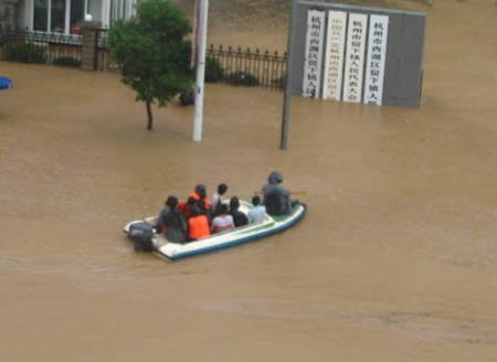 | 杭州市防汛抗旱指挥部9日称,40年未遇的强暴雨使杭州主城区街巷遭受罕见水灾,1500多户居民家中进水,部分小区停水停电,19所学校被淹停课,目前无人员伤亡报告。截至8日晚22时,杭州8个县市区洪涝面积达82.198千公顷,受灾人口超过21万人,直接经济损失3.646亿元。更多>> |