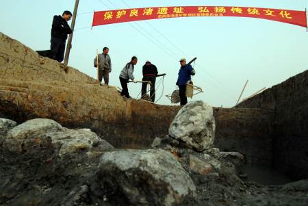 | 浙江省文物局与杭州市政府联合宣布发现了良渚古城遗址。这是目前所发现的新石器时代中国最大的城址。杭州市余杭区委、区政府表示,良渚古城内以及城墙遗址上的现存建筑物只减不增,严加控制。对东南西北四面城墙的已发掘区进行围护,设立告示牌,设专人值守,防止人为破坏。同时对发掘面积较大的西城墙和北城墙地段以租地方式加盖简易保护棚,防止雨水的自然冲刷破坏。更多>> |