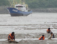 遇险渔民弃船上岸