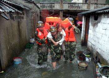 浙江省军区部队官兵和民兵全力迎战"莫拉克"