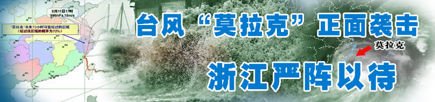 "莫拉克"将正面重创浙江 浙江省气象台9日中午发布台风最高级别红色预警