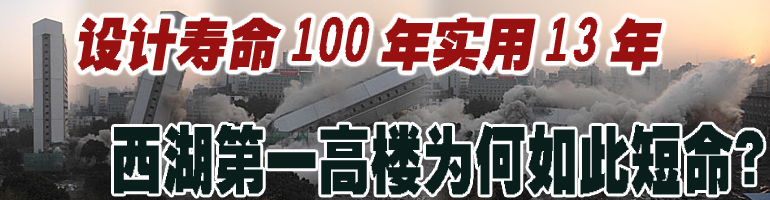 西湖第一高楼炸出争议 设计寿命100年实用13年