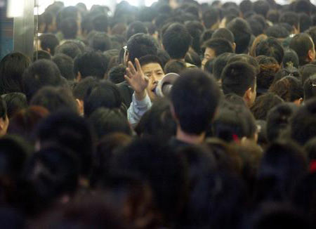 | “一早去银泰,结果门还没开,等开门后,根本就挤不进去,等第一波人潮过去,门口留下了6只不一样的鞋子,3把踩破的雨伞……”这是网友“期待真相”昨天去银泰百货血拼后在杭州网论坛上的留言。虽然看上去有点夸张,不过对银泰血拼现场的描述还是很形象的。 昨天上午,银泰商场内人多得只能从消防通道上楼。为了防止出现信号阻塞,移动公司还专门在银泰广场上搭了个临时机站。更多>> |