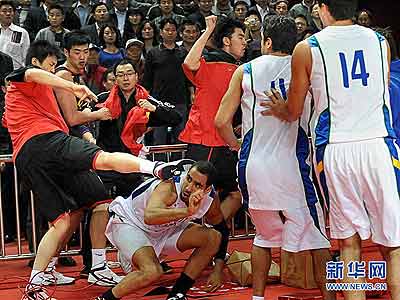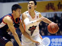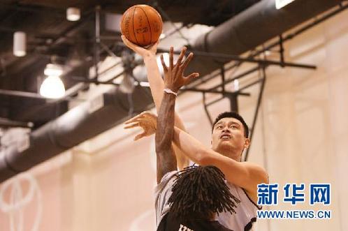 实拍姚明首次对抗训练 “打爆”海耶斯