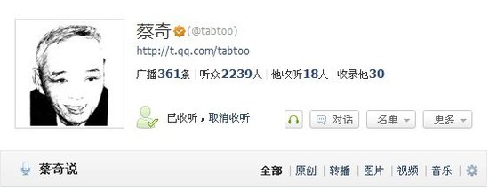 浙江省委常委、组织部长蔡奇低调开微博已将近一年,不过最近急于营销微博业务的腾讯把“潜水”的蔡奇推上了公众视线[详细]