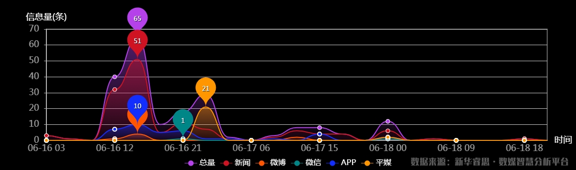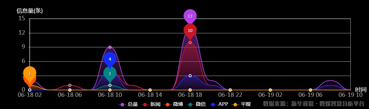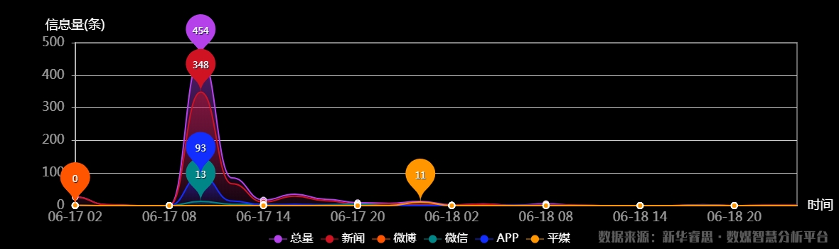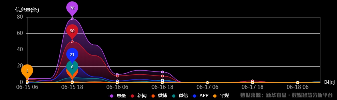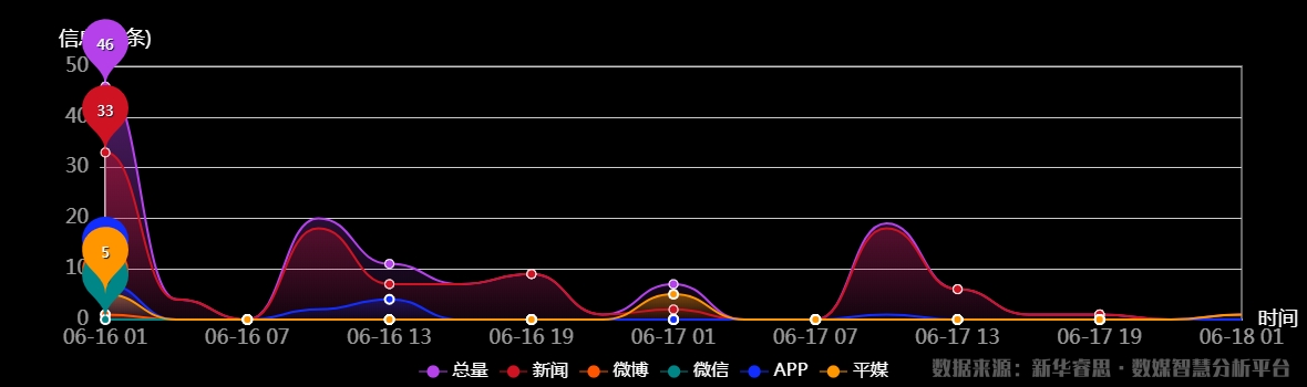截至目前,该文章在互联网上传播时长为2天18小时,传播总量225篇,有137个媒体参与传播。其中2020年6月16日11时是传播的高峰期,共传播46篇文章。(数据来源:新华睿思·数媒智慧分析平台)