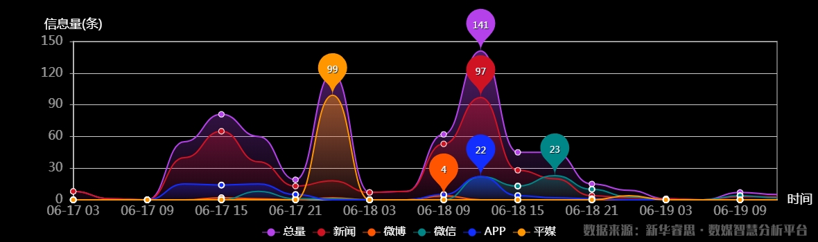 截至目前,该文章在互联网上传播时长为2天2小时,传播总量140篇,有96个媒体参与传播。其中2020年6月15日22时是传播的高峰期,共传播33篇文章。(数据来源:新华睿思·数媒智慧分析平台)
