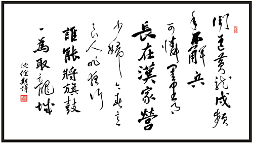 此诗构思奇巧,尤其是中间写闺中少妇和征人相互思念的两联,在“情”、“意”二字上着力。“可怜闺里月,长在汉家营”,以月为媒介写每当月夜,家里的闺中少妇和汉家营里的征人就会相互怀念,共看明月遥寄相思之情。