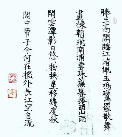 《滕王阁诗》受到历代诗评家的高度评价,清代周容在《春酒堂诗话》中评道:“王子安《滕王阁诗》,俯仰自在,笔力所到,五十六字中,有千万言之势。”