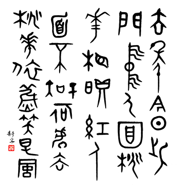 前两句是一个场景,时间坐标是去年今日,门中少女的美丽容颜与盛开的桃花相得益彰,而红字,更是刻画出了少女与诗人一见倾心的娇羞。