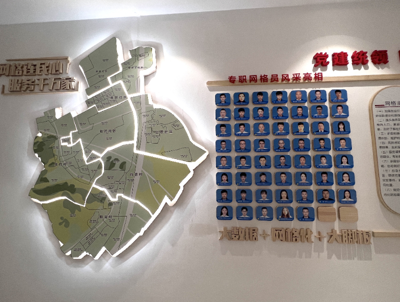 在完善制度体系的基础上,南白象街道进一步优化阵地建设。通过设置镇街指挥中心与区指挥中心联通的视频监控,明确“四条跑道”的组织架构和业务流程图。截至目前,该街道共打造了2个社会治理现代化示范点和2个“一网格三队伍”提升村社治理能力示范点,完成第一批微网格工作站建设,各村社综治工作室已全面建成。