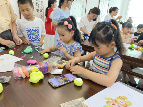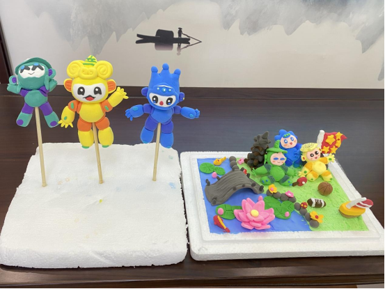小朋友们现场DIY,用黏土制作了一个个亚运吉祥物。