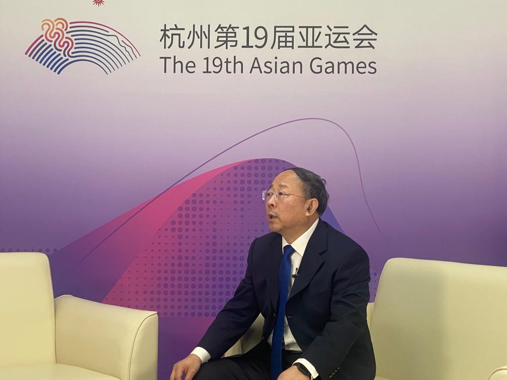 10月5日,中国体育代表团副团长刘国永接受记者采访。新华社记者 董意行 摄