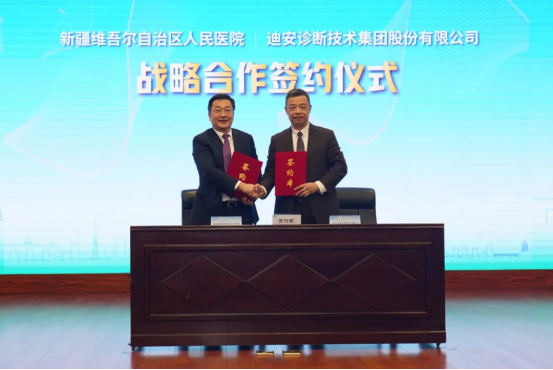 现场,新疆维吾尔自治区人民医院和迪安诊断进一步签订了战略合作协议,双方将发挥各自专业优势,促进新疆地区精准医学的更高质量发展。
