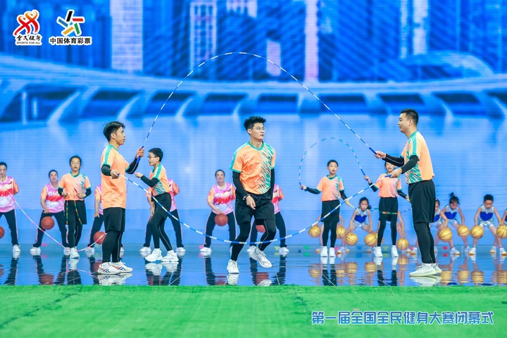 当日的闭幕式进行了主题为“人人爱体育·闪耀满天星”的群体项目展示。国家花样游泳队教练员、运动员向大赛总决赛项目冠军代表颁奖,巴黎奥运会冠军徐嘉余、郑思维、盛李豪向第一届全国全民健身大赛典型案例、典型个人奖项获奖代表颁奖。