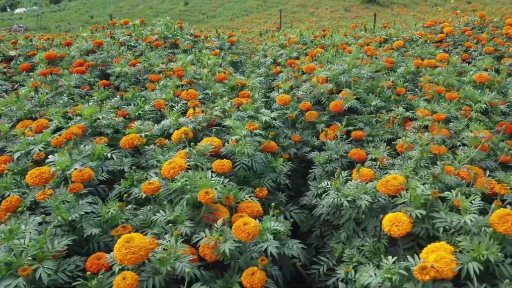 据统计,今年双柏县共种植万寿菊12000余亩,预计鲜花总产量3.8吨,预估产值约4260万元。