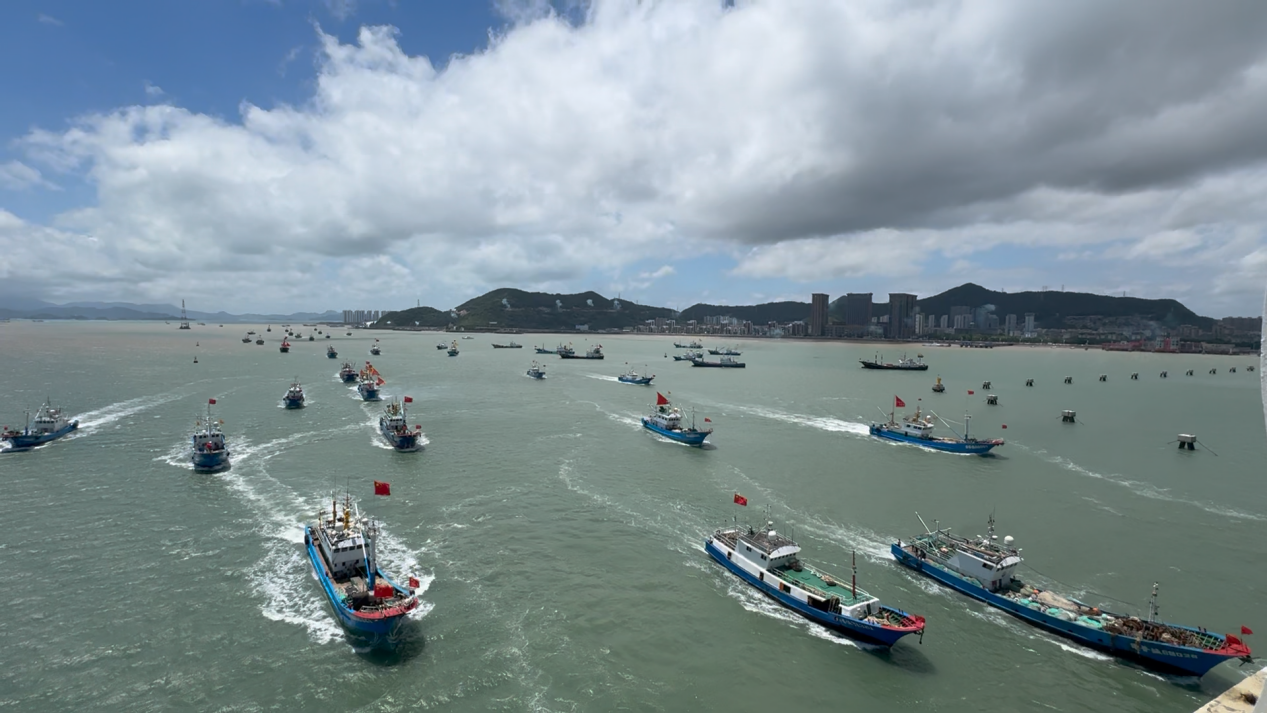 8月5日中午12时,伴随着嘹亮的汽笛声,在浙江省舟山市普陀区沈家门渔港等港口,作业渔船浩浩荡荡迎着海风,破浪前行,正式拉开新一轮海上生产的序幕。