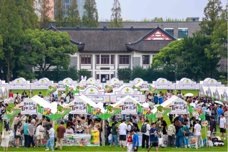 白露至,秋意浓,百廿学府迎新生。9月7日,复旦大学邯郸校区相辉堂草坪人声鼎沸,“鲜玉奇缘 百廿迎新”迎新文创供销市集开幕。