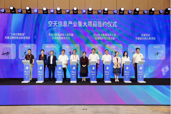 随着商业航天连续两年被写入政府工作报告,相关技术已从概念走向实践,广泛应用于数字贸易、智慧城市、自然资源监测等多个领域,正成为推动高质量发展的新增长点。为推动这一产业链协同发展,会议现场举行了一系列重点项目签约仪式,涉及低空飞行器研发制造、卫星通信应用、模型计算研发等。