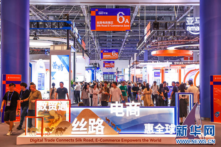 这是2025年9月25日拍摄的第四届全球数字贸易博览会丝路电商展区。新华社记者 江汉 摄