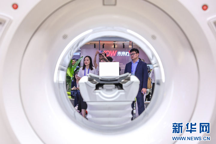 2025年9月25日,观众在第四届全球数字贸易博览会数字医疗展区参观智能医疗设备。新华社记者 江汉 摄