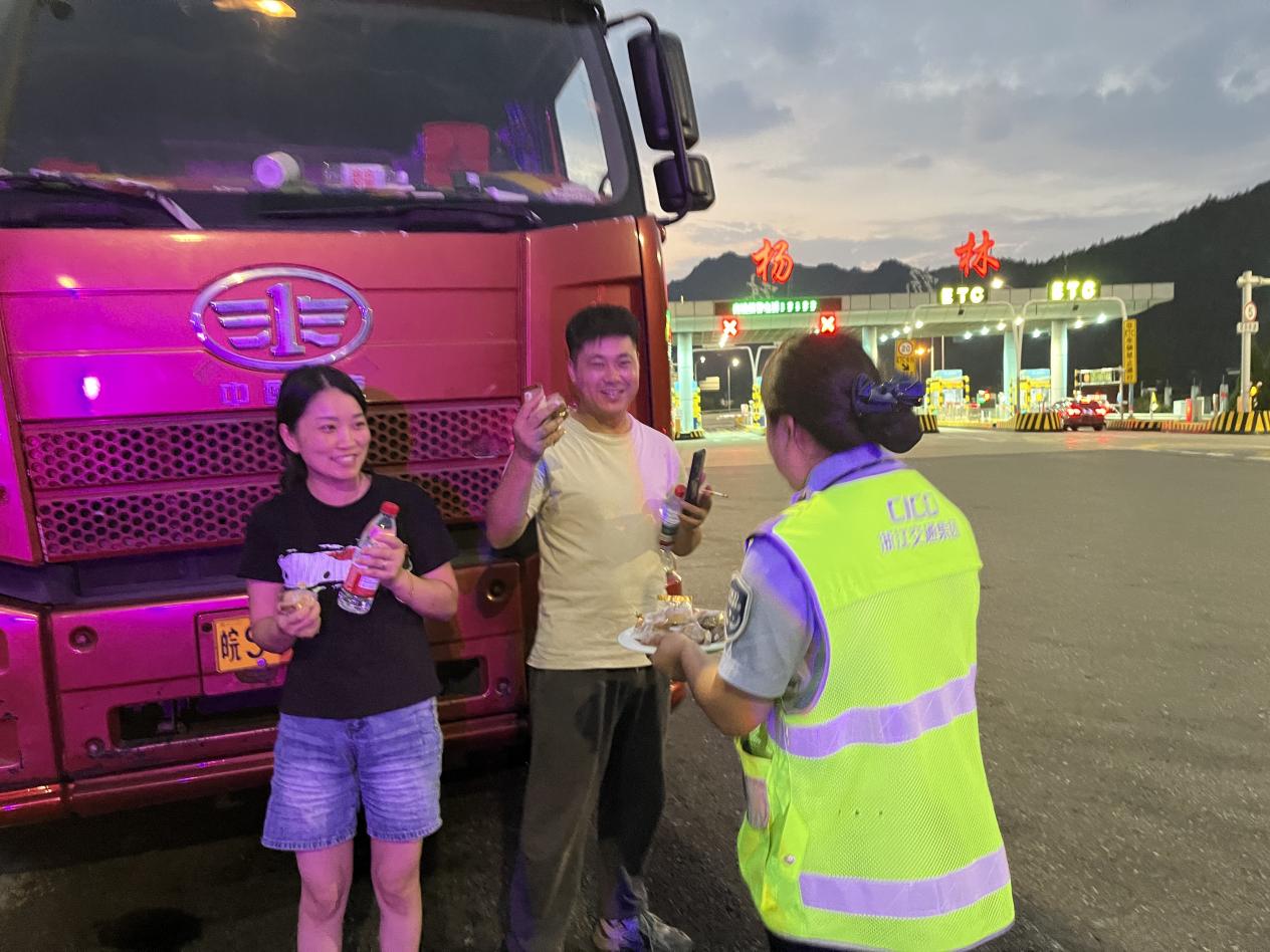 “师傅,中秋快乐,一路平安!”10月4日,中秋佳节将至,浙江省交通集团杨林收费站外广场暖意融融。车辆缓缓驶出车道,志愿者们将一份份承载着心意的月饼递入车窗。