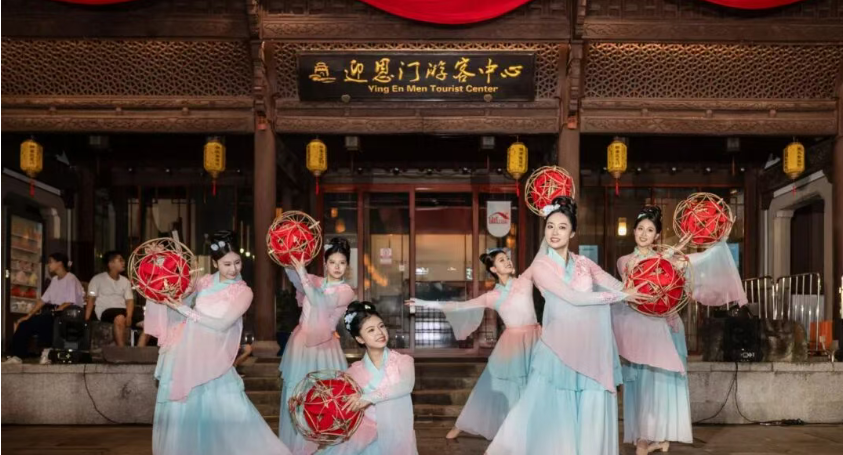 9月30日至10月4日,迎恩门风情水街的“迎恩盛典·状元风华”大型实景演绎每日准时上演,成为引流周边商圈的重要引擎。演出结束后,大量游客自然流向毗邻的银泰购物中心延续消费体验,形成了“白天游景区、夜晚看演出、购物在商圈”的完整消费闭环。据悉,商圈针对长假特点推出抖音团券与茶饮1元尝鲜活动,叠加政府消费券的双重优惠,餐饮、零售店铺的客流大幅增长。