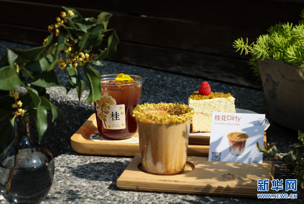 由桂花制成的特色咖啡、糕点吸引游客品尝。新华网发 夏越峤 摄