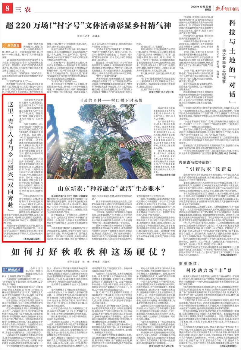 支持青年人才在农村实践学习、就业创业,打造现代“新农人”“农创客”——浙江临海汛桥镇通过实施青年入乡“十百千”工程,强化“引育用留”政策,实现了青年人才与乡村振兴“双向奔赴”。