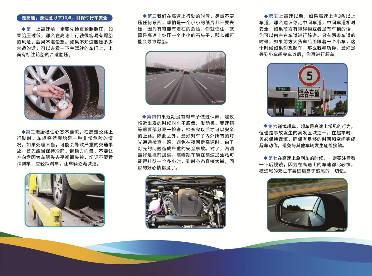 这套宣传单被司机亲切称为“高速行车安全宝典”。年初《高速隧道大客车驾驶员应急处置流程卡》为春运保驾护航,有驾驶员称赞“步骤清晰,关键时刻很管用”;《春节返乡走高速需要注意什么?》成为返乡人员的贴心指南,大家纷纷表示“提醒很实用,路上更安心”。春耕时节《行人禁止上高速》深入沿线村镇,村民反馈“现在更清楚上高速的危险了”;汛期前《“群防吹哨”网格共护平安高速》发动群众参与,形成“人人争当安全哨兵”的良好局面。