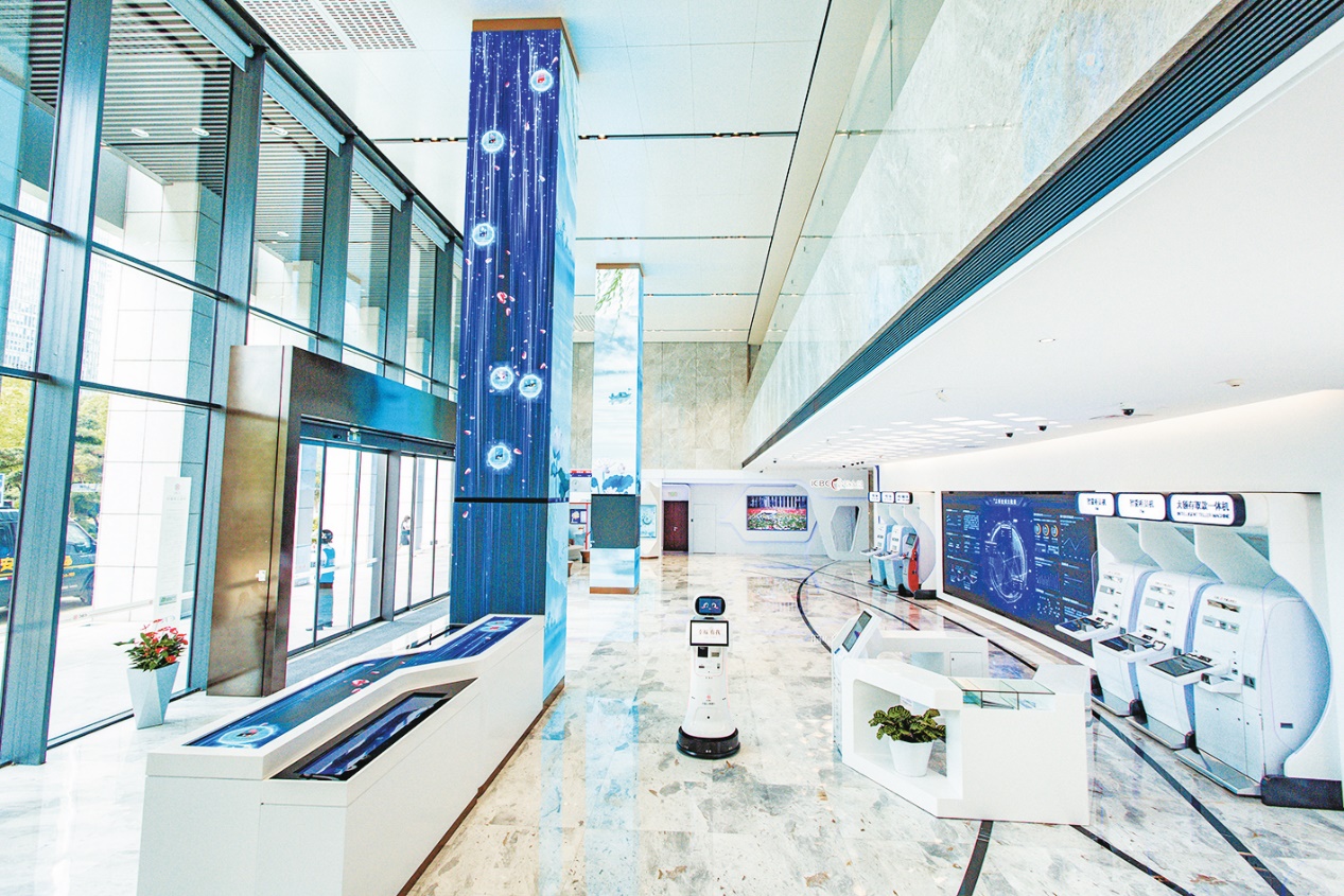 灵伴科技的智能眼镜,吸引众多观展嘉宾驻足体验。工行现已将AI与AR技术应用于网点服务的创新实践。