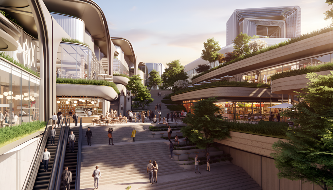 商业综合体中还将打造一座“3D”的立体市民公园——“超级绿芯”。它将打破传统商业空间的封闭感,相当于把商业楼栋打造成一个“可漫步的空中花园”,比如采用退台式设计,在建筑逐层形成“露台花园”,市民逛街时如同置身在公园里,满目都是绿色。