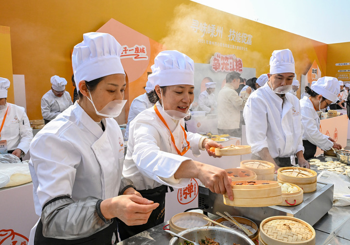 2025年12月30日,“寻味嵊州·技能促富”小笼包技能比武大赛总决赛在浙江嵊州小吃共富产业园举行。新华社发
