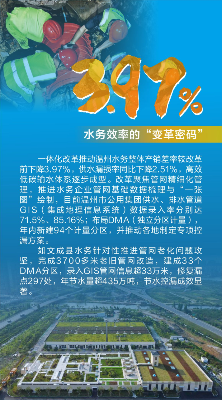 原水调度“一盘棋”,服务标准“一体化”,日供水能力从150万吨跃升至397万吨,供水惠及985.2万人……一汩汩清泉冲破行政藩篱、穿越城乡界限、润泽千家万户,温州将“好水到家”改革深度嵌入共同富裕大场景。(周筱隆/文 谢鹏程 张天杨 戴达奇 朱超 /图)