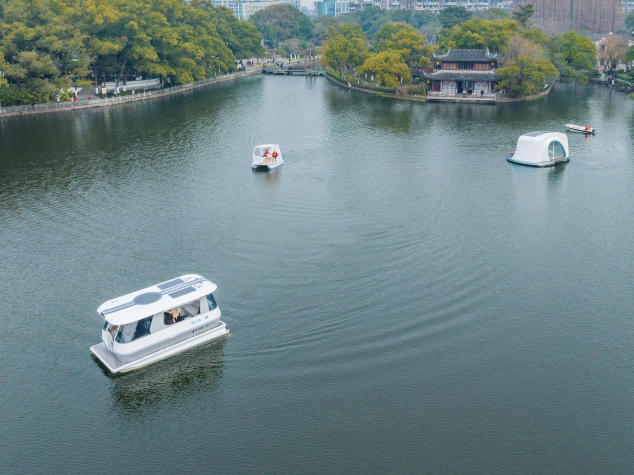 据了解,这三艘智能游船分别名为“罗小舟·智”“罗小舟·悦”以及“罗小舟·墨”。与传统游船不同,“罗小舟”系列游船采用“电能+太阳能”环保动力模式,实现零排放、低噪音运行。游船以“水上超级空间”为设计理念,将智能交互与舒适体验深度融合,让市民游客在泛舟湖面、品读千年文脉的同时,沉浸式感受科技与自然的和谐共生。