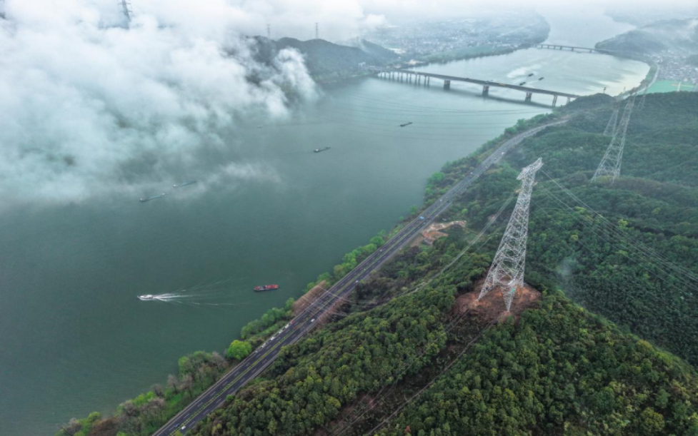 国网杭州供电公司建设部工程管理专职杨正清介绍:“富春江位于国家级风景名胜区的核心生态保护区,是钱塘江上游的黄金航道,工程跨江点江面宽达795米且两侧均为高山。若采用地下工程,不仅面临复杂地质挑战与生态约束,更会大幅增加投资与工期。”因此,架空跨越成为兼顾技术可行、经济合理与生态保护的最优解。