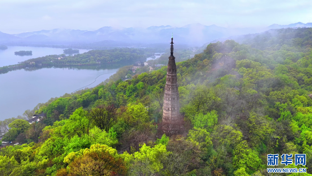 雨后杭州西湖宝石山上的保俶塔。新华网发 方临明 摄
