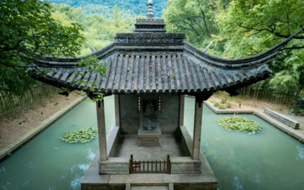 兰亭碑亭内,康熙皇帝御笔亲题的“兰亭”二字风骨犹存,残缺之美更添历史厚重感;御碑亭中,高约6.8米、宽2.6米的巨型石碑巍然矗立,碑阳是康熙手书《兰亭集序》全文,碑阴为乾隆皇帝1751年游兰亭时所书《兰亭即事诗》手迹,祖孙二帝手迹同碑辉映。王右军祠依山而建,白墙黛瓦与竹林溪水融为一体,祠内墨池清波荡漾,相传为右军洗笔研墨之处,池中墨华亭与廊桥相映,“山水廊桥亭”浑然一体,尽显匠心。御碑亭旁,十八口青石大缸次第排开,相传是王羲之教导弟子习字之地,旁侧太字碑与习字坪相映成趣,坪上备有毛笔,游客可蘸水临帖,切身感悟“滴水穿石”的书道传承与坚守。