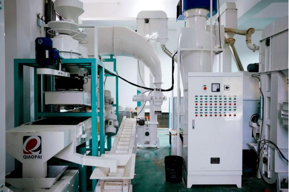 “以前用旧设备脱壳,效率低、碎米率高,加工出来的米仁大小不一、品相参差不齐。加工后还得人工二次筛选,人力成本居高不下。”双溪口乡强村公司负责人陈智胜表示。为破解这一瓶颈,双溪口乡引进了这条涵盖“清理分级”“脱壳分选”两大核心模块的标准化生产线。从原料清理到成品筛选,全流程自动化作业,碎米率大幅下降,加工效率成倍提升。