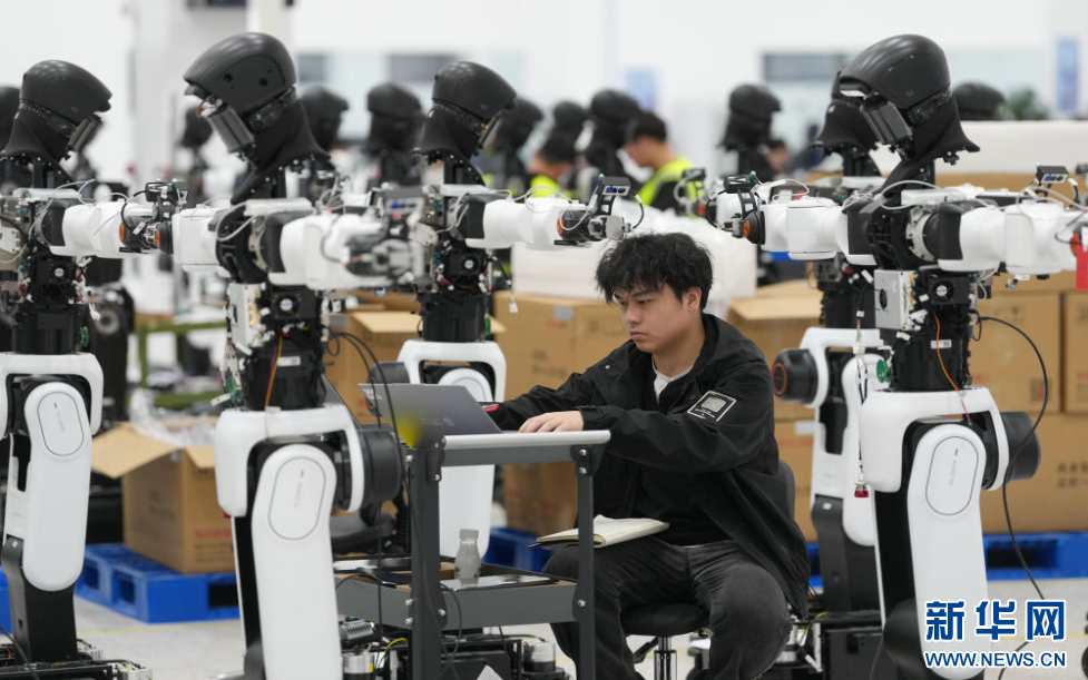 3月24日,在宁波普智未来机器人有限公司,技术人员在调试实现量产的人形机器人。新华社记者黄宗治 摄